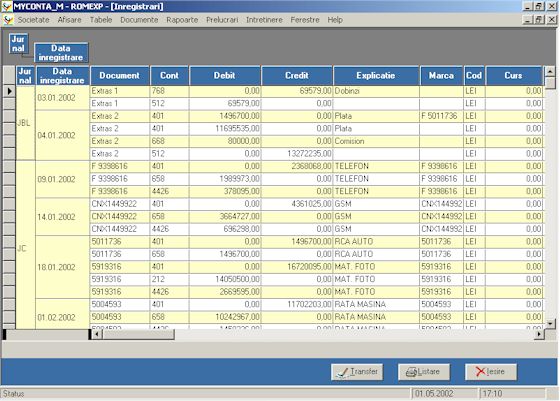 incasari, plati, iar programul realizeaza transpunerea in conturi si