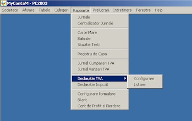 Pentru formularele de raportare a caror forma si continut se schimba periodic, programul are optiuni de Configurare a acestora (Decont TVA, Bilant, Cont de Profit).